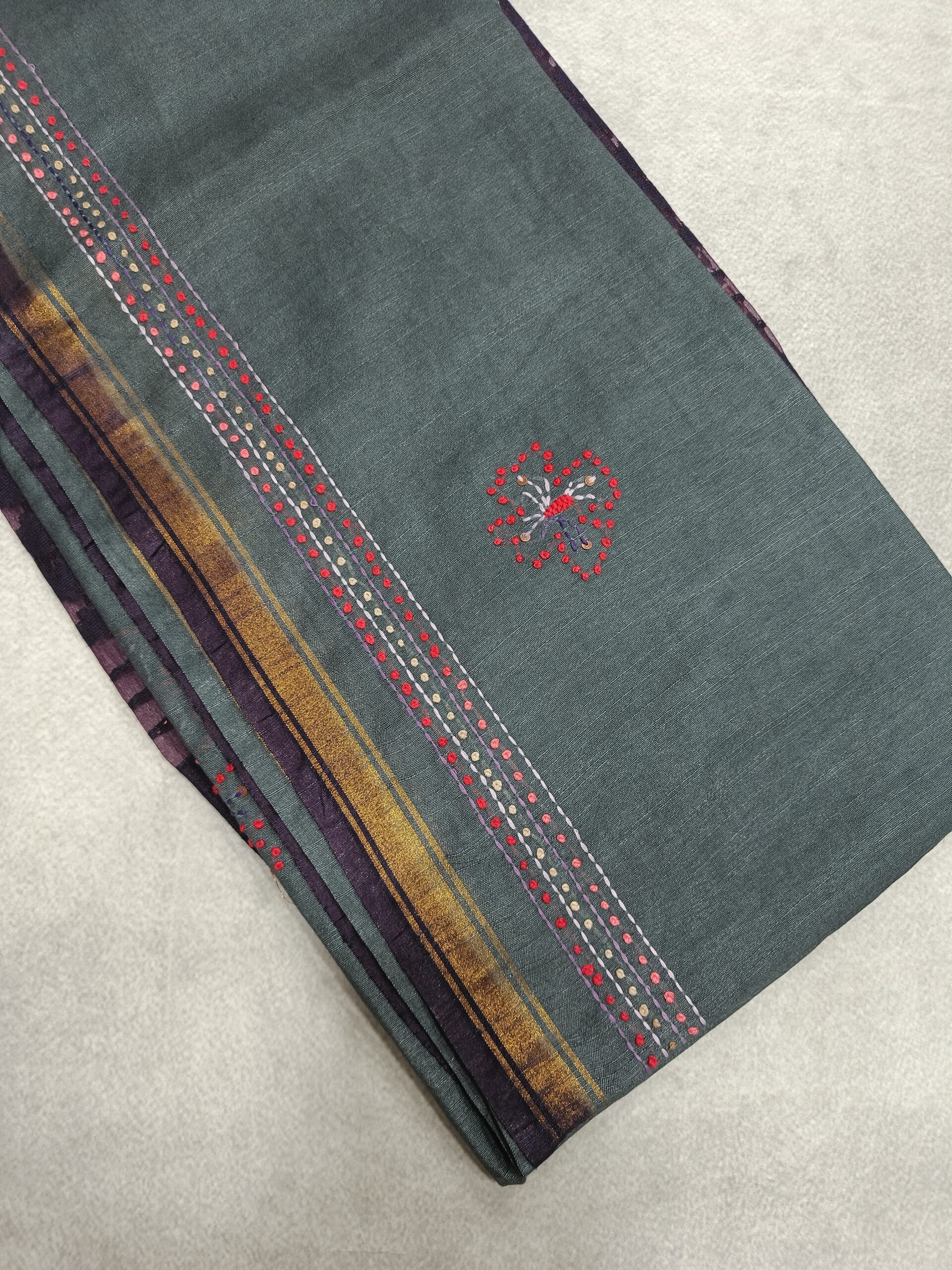 Cotton Saree with French Knort Handwork