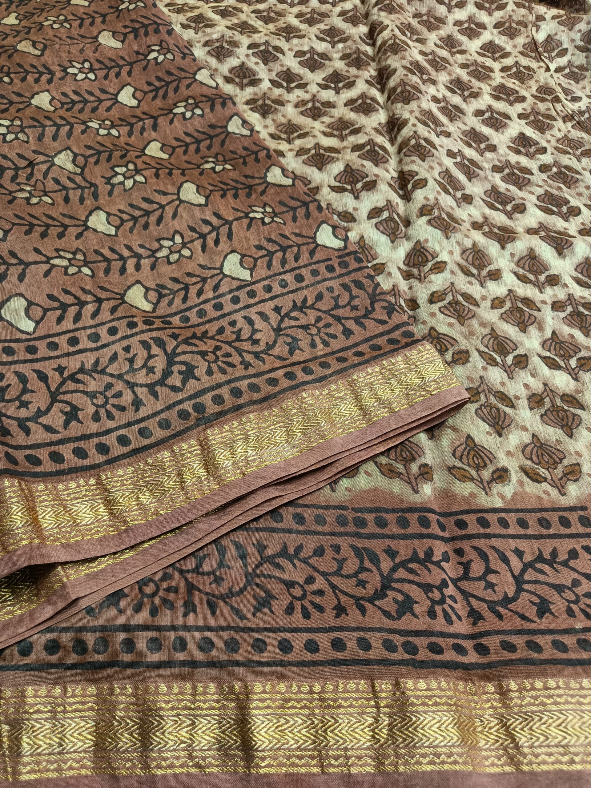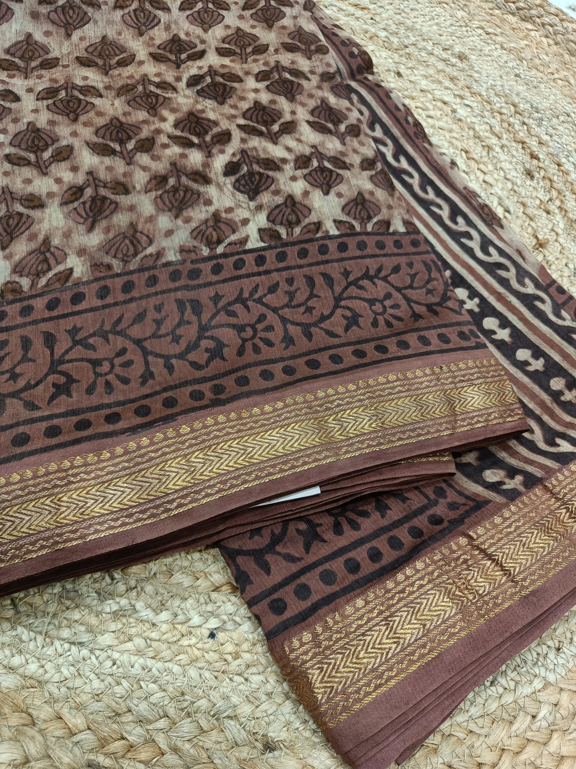 Pure Maheswari Silk Cotton Saree with Hand Block print