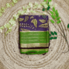 Saree Color: Rich Deep Purple with vibrant Green and Gold Zari Accents