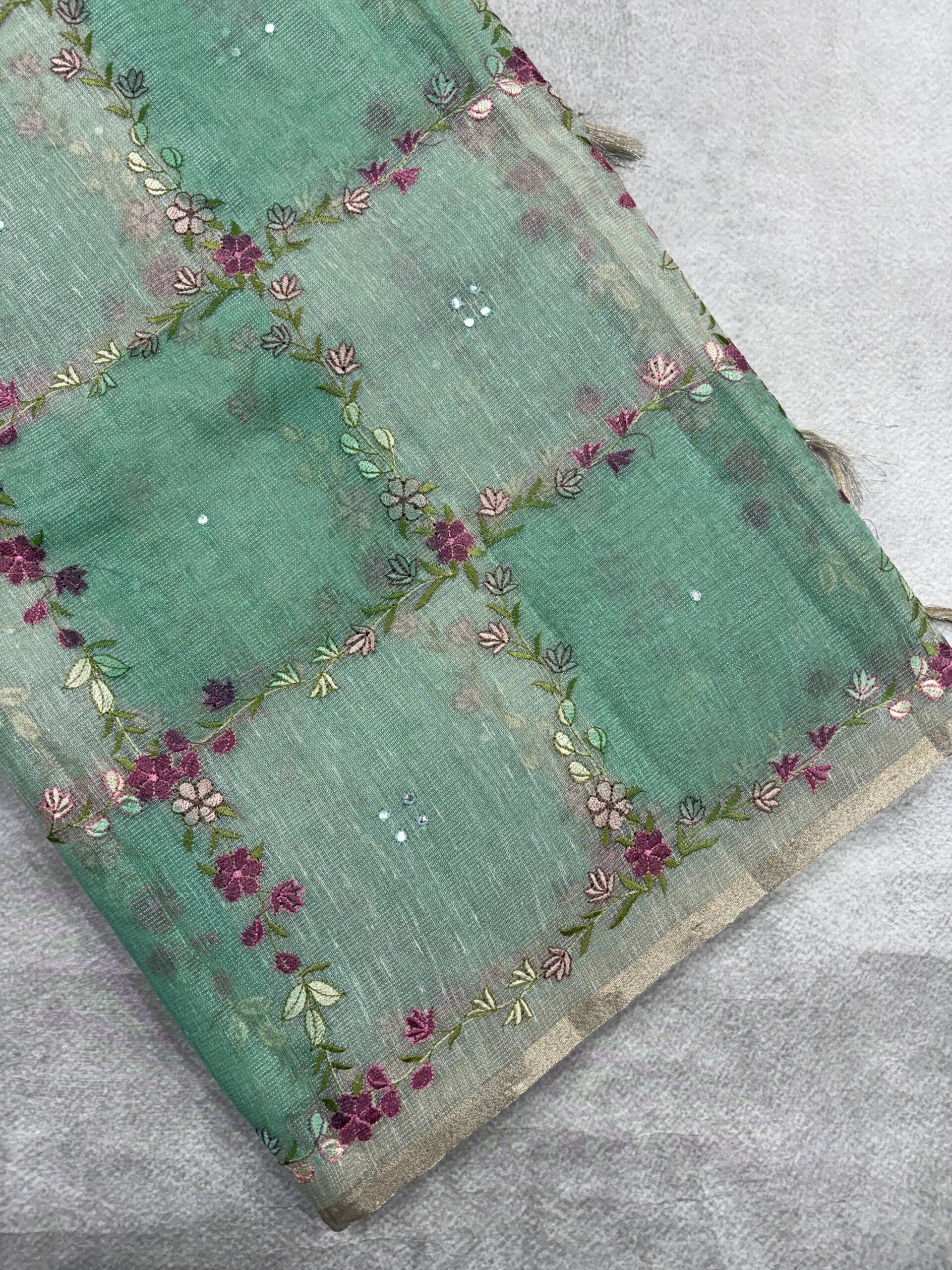 Pure Kota Lenin with Machinery Work Saree